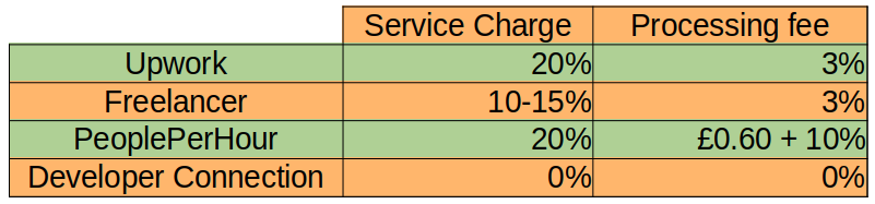 Freelancer does the same though at a smaller rate of 10-15% and like Upwork, will charge an extra 3% processing fee on top for the privilege of using their free payment tool. Again this does not include any extra add ons or service 'benefits' that are on offer. Making the same assumption as with Upwork that the developer will pass on half of the cost and even taking the lower percentage, you as a client are now paying an extra 8% on top of your projects cost per hour.